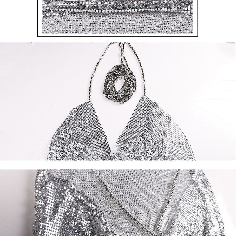 Description: Sexy Chainmaille Party Dress with Deep V Neck Plunge Metal Fabric